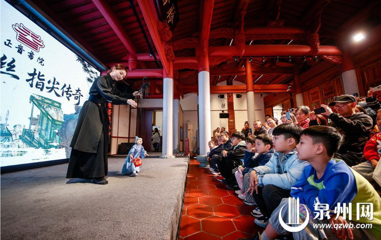 灯光秀之外,各类夜游活动多点开花、精彩纷呈。“龙马耀刺桐,灯彩染古城”大型主题灯会贯穿古城核心区域,威远楼前“龙马精神”创意花灯气势恢宏,金鱼巷内“妙音鸟”立体灯组雅致灵动,中山路沿线近千盏生肖、美食、世遗主题花灯连缀成流光溢彩的灯河,成为夜间打卡的核心地标。正音书院常态化推出木偶、南音、五祖拳等沉浸式展演,夜幕降临,木偶戏《小沙弥下山》和布袋戏《掌中弄巧》的“指尖功夫”为市民游客带来充满年味的文化大餐,古老非遗在温暖灯火下焕发新生。“特意带着家人从厦门过来,没想到泉州的夜晚这么精彩,艺术装置和演出活动都很有特色,随手一拍都是大片。”来自厦门的游客林女士笑着说,沿着西街一路赏灯,既能品味古城古韵,又能感受到新春热闹,这份夜色里的欢喜特别治愈。