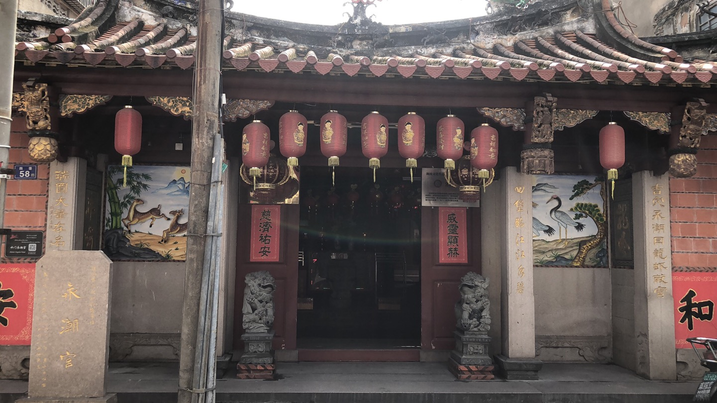 参观【永潮宫】(海滨街道水门社区四堡58号)。旧城厢铺境神庙信俗是古城区特有文化事象。永潮宫,俗称四堡宫,有明宰相张瑞图书写“慈济威灵”横匾。慈济为铺名。2006年重建,靠近旧城墙的工地出土两门古代铁炮,是明清时期镇守泉州南薰门(水门)所用的防卫武器。