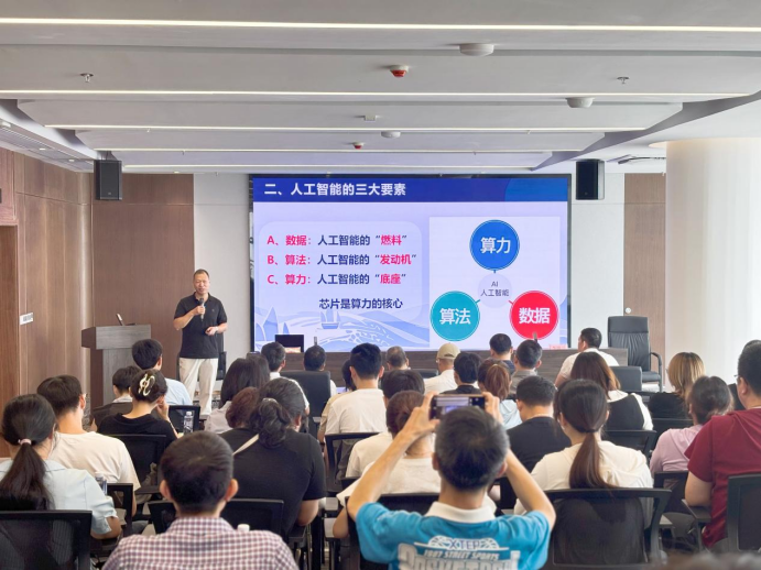 培训会上,仰恩大学副教授曾凤生老师以《AI时代的机遇与挑战》为题,梳理了人工智能从1956年达特茅斯会议起源至今的发展脉络,强调数据、算法、算力三大要素协同驱动,剖析了DeepSeek开源模式爆发式增长等实例,解读具身智能、科学智能等前沿方向,引发了与会者们的深度思考。